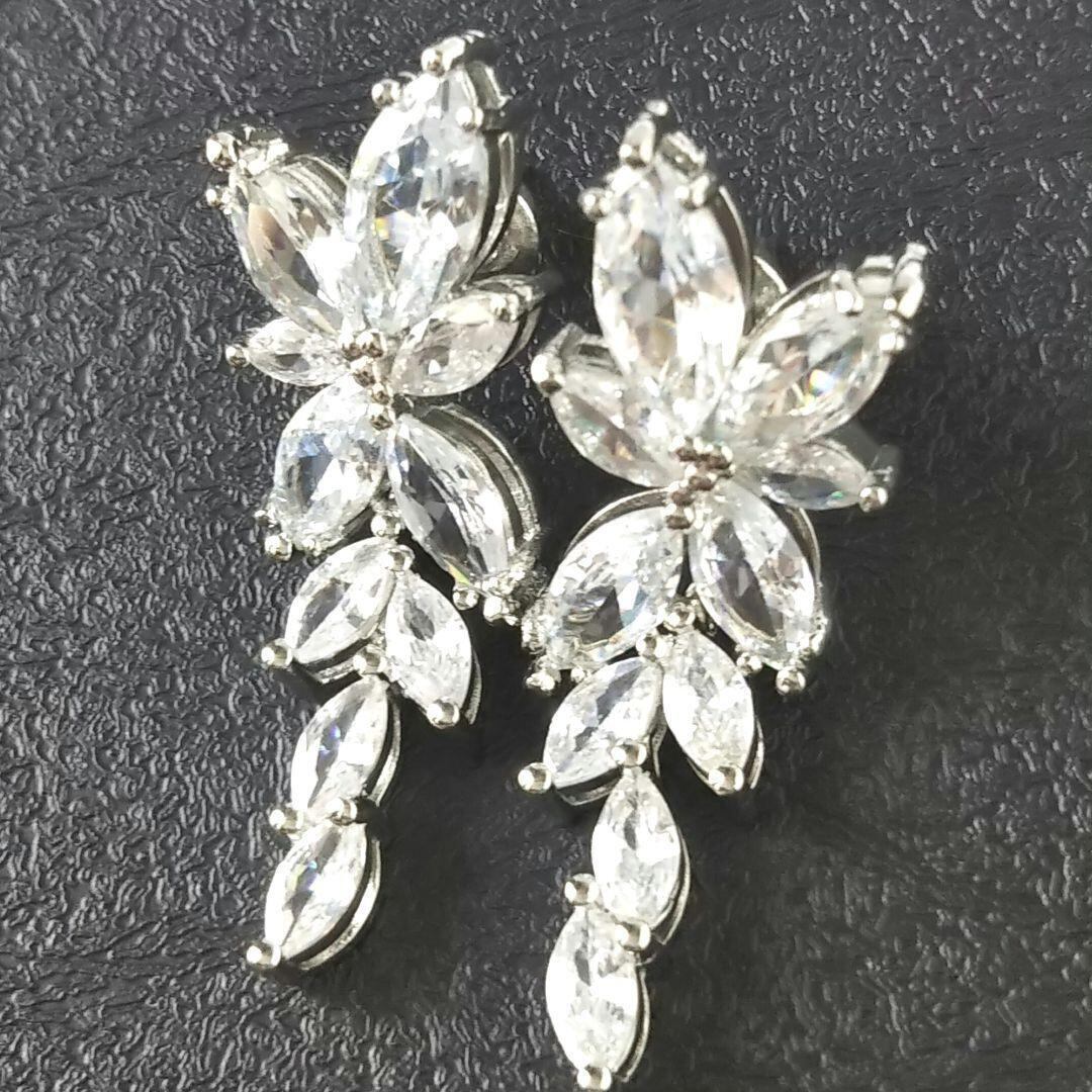 葉のかたちをモチーフにした、マーキスカット の キュービックジルコニアを使用し、華やかでありながらナチュラルな雰囲気のあるピアス(イヤリング)です♪